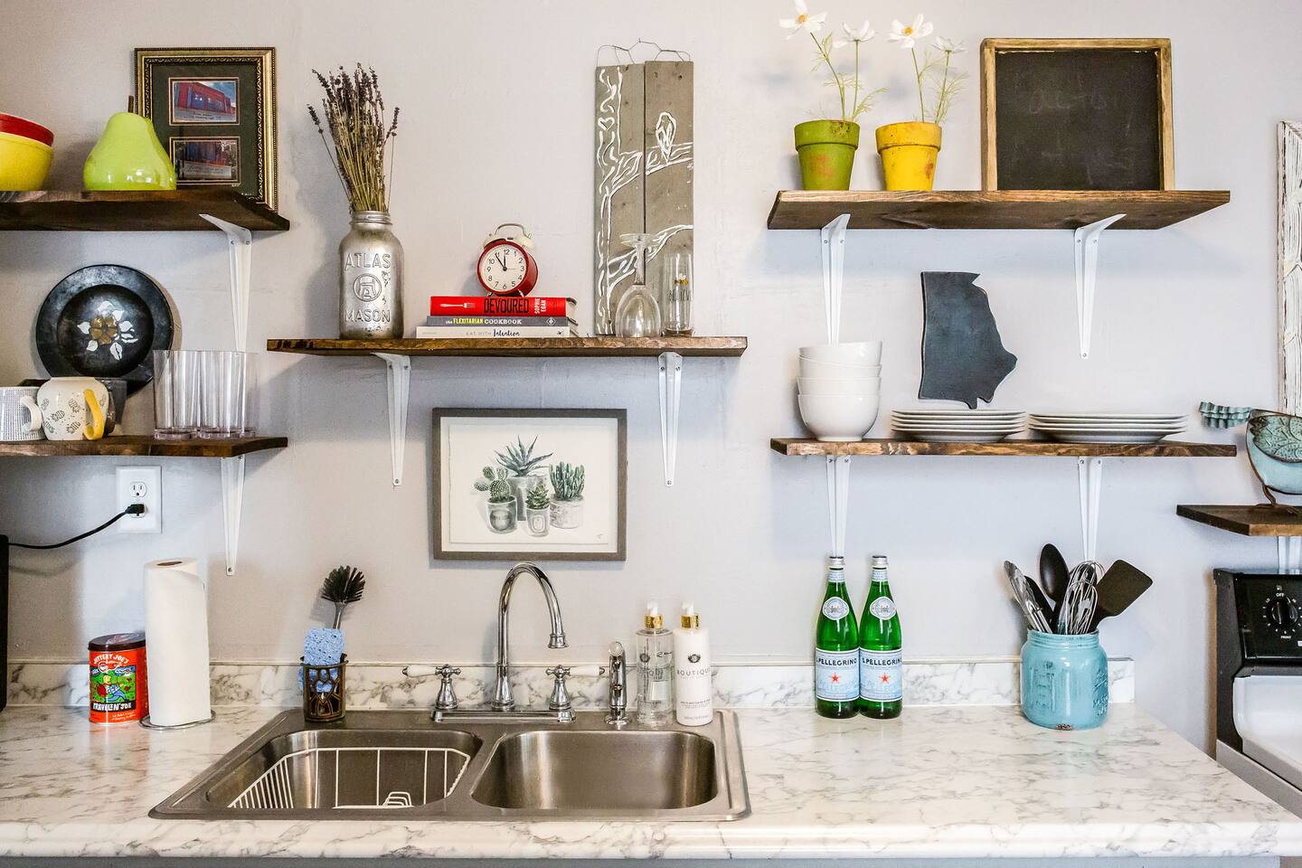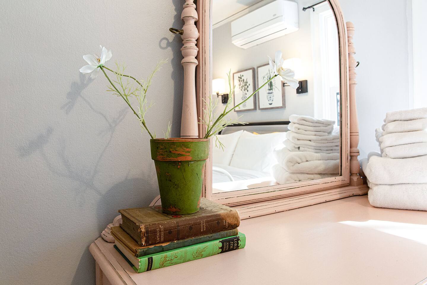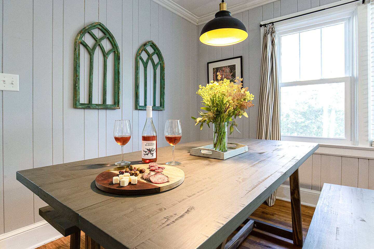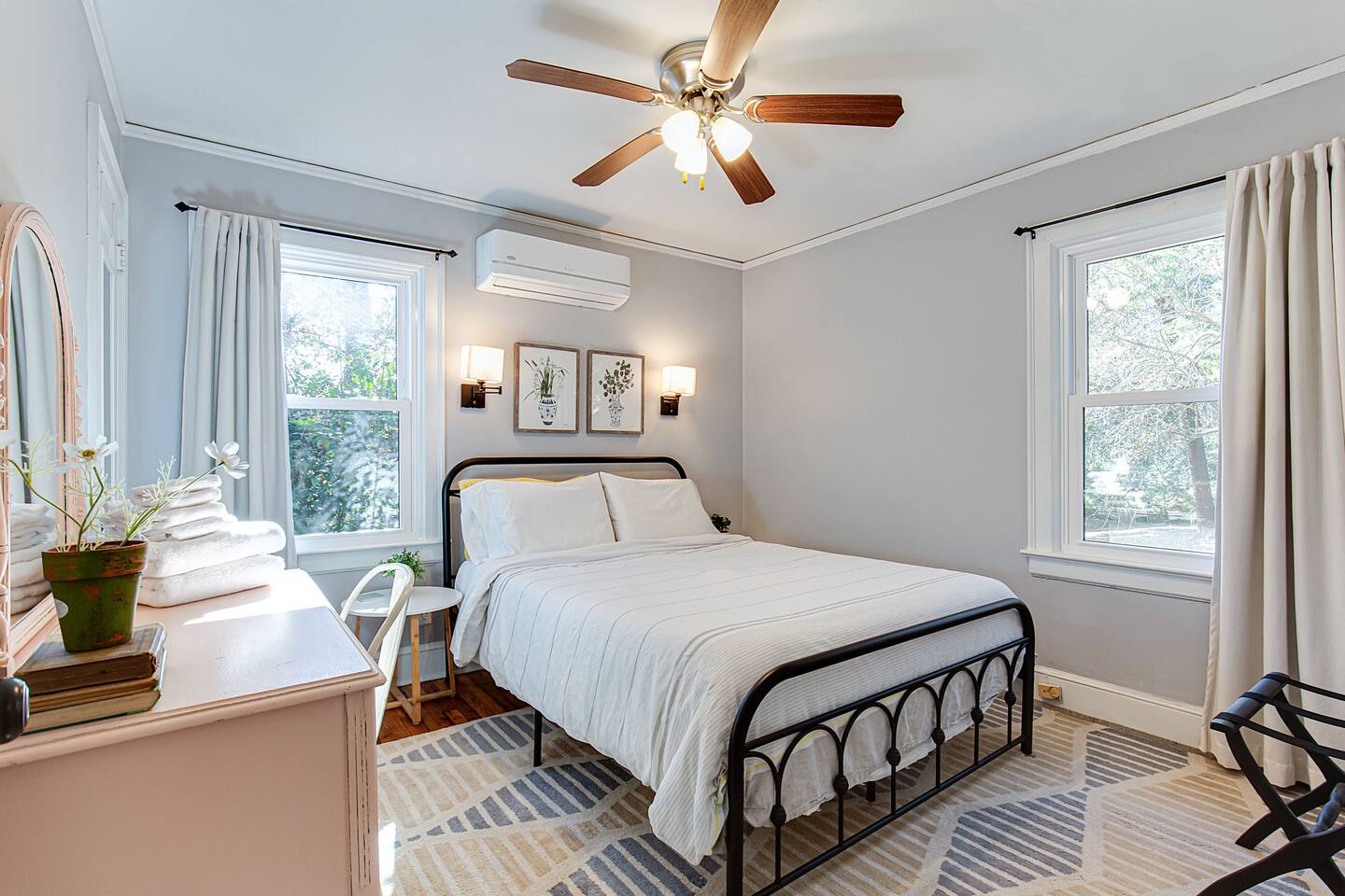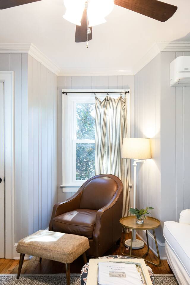 One bedroom, one bathroom apartment with a full kitchen, and loaded with charm and character. Newly updated and renovated. Relax inside in the cozy living room with the HDTV and comfy sofa, or enjoy the historic homes and UGA campus just down the street. The bedroom features a queen memory foam bed. The living room features a comfortable sofa for lounging, two leather chairs, three ottomans, and a 42-inch flat screen Roku TV. Enjoy tv provided by cable and streaming channels such as Netflix, Amazon, ESPN, HBO, Starz, Showtime, and more. The bedroom features a queen size memory foam mattress, blackout curtains, two large mirrors, a luggage rack, closet space with hangers, and drawers for storage. The kitchen features a full refrigerator, full range with oven, coffee maker, pots and pans, and dishes and silverware for your stay. There are two spaces to sit and eat. A two-seat table in the kitchen and a 4 seat dining table in the main living space. The patio space out front features a two-seat bench and two individual seats. Surrounded by plants and outdoor lighting, this space lights up at night.