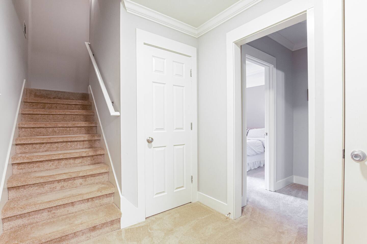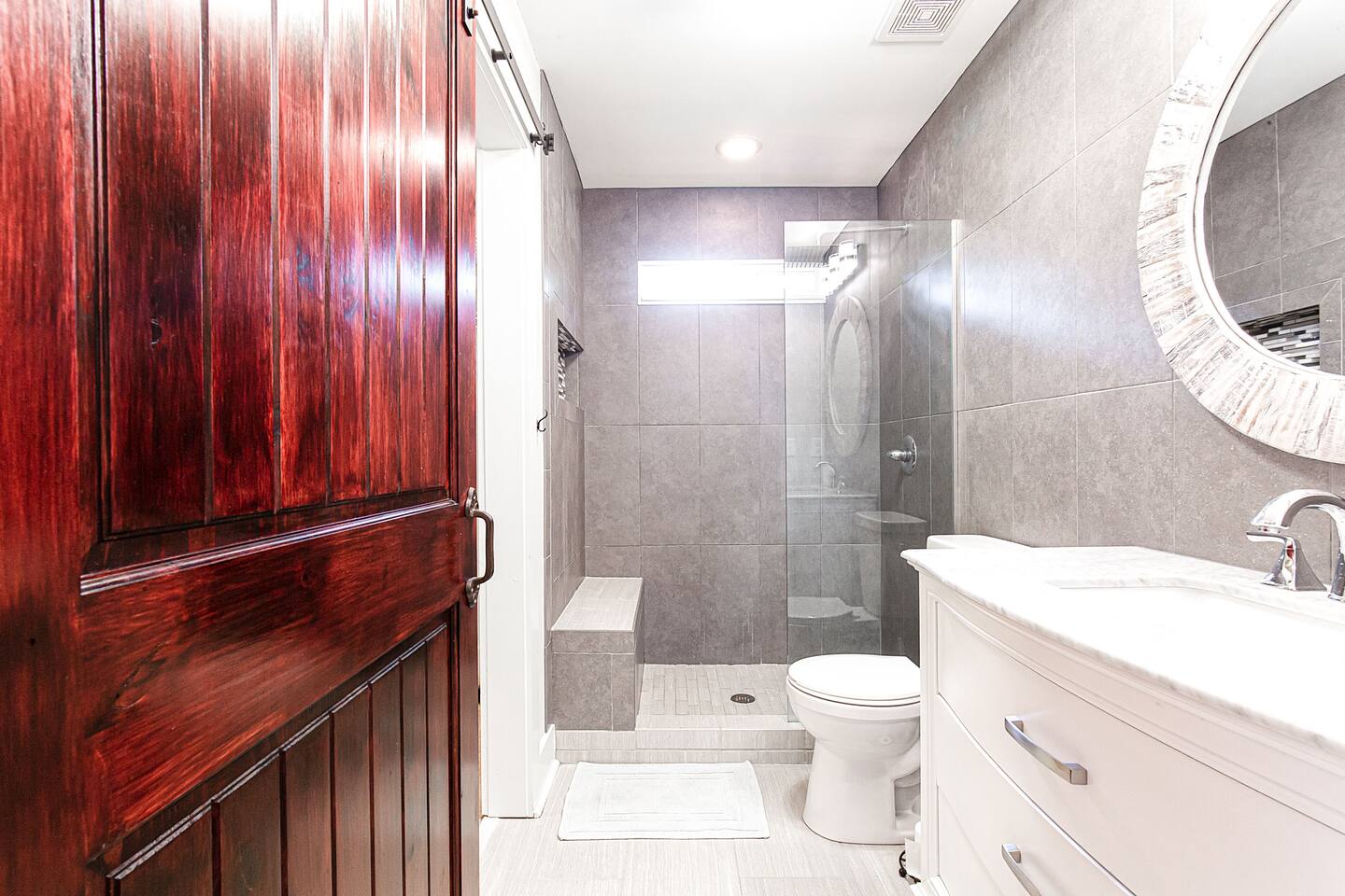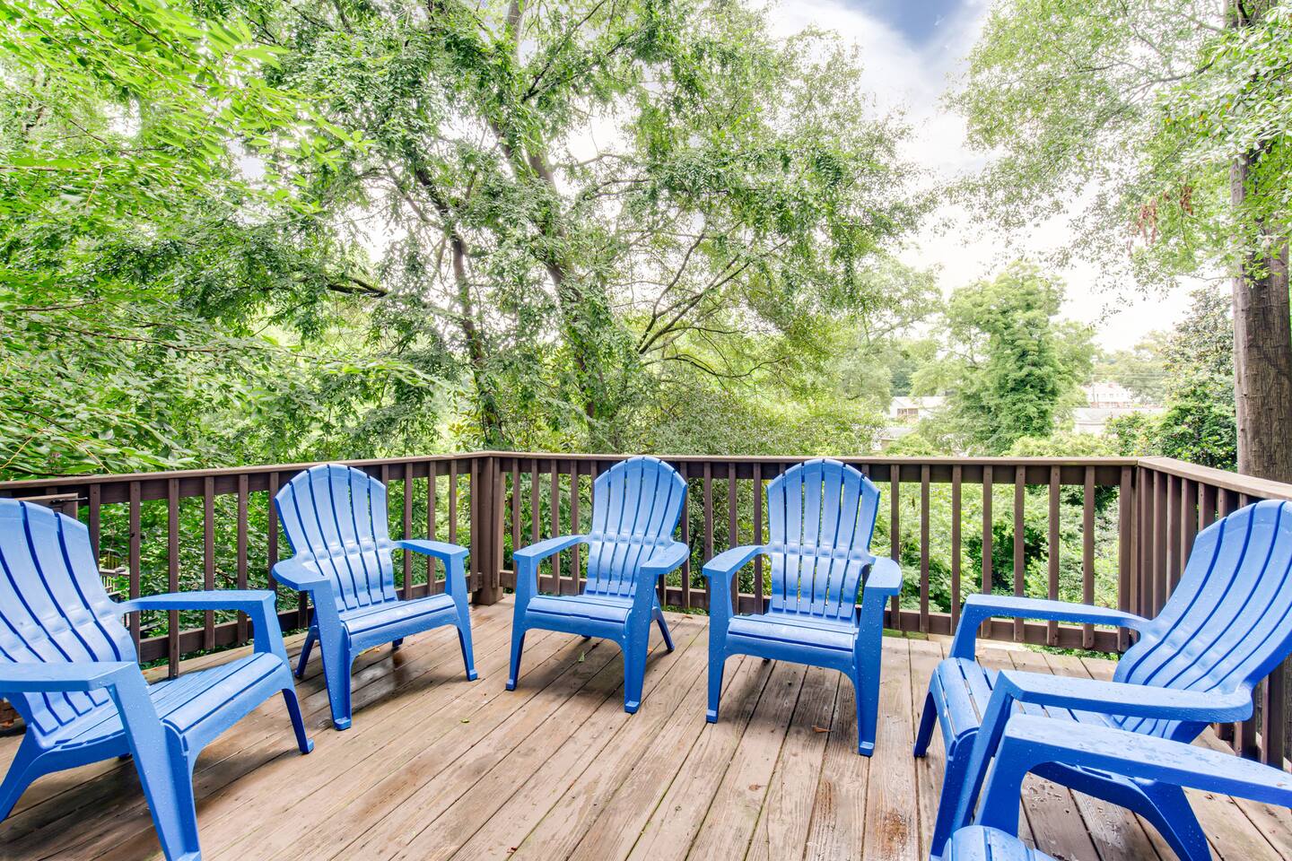 As you step inside, you'll be greeted by a bright and spacious living and dining area, perfect for socializing with friends and family. The living room features comfortable sofas and a large flat-screen TV with streaming services for cozy movie nights, while the dining area seats eight for delicious home-cooked meals. The fully equipped kitchen has everything you need to cook up a storm, including a gas stove, oven, microwave, fridge/freezer, and dishwasher. Three bedrooms are located upstairs and one is in the basement, providing privacy and comfort for all guests. The master bedroom features a king-size bed and ensuite bathroom. The other bedrooms have queen-size beds. There are two full bathrooms upstairs, one with a shower/tub combo and the other with a walk-in shower. One-half bath on the main level, and one full bath in the basement with a tub/shower combo. We provide all the linens, towels, and toiletries you need to make your stay comfortable and hassle-free. Our home also features a washer and dryer, as well as high-speed Wi-Fi throughout. There's ample parking available on the driveway and street, and the backyard features two decks with seating for all, perfect for outdoor dining and relaxation.